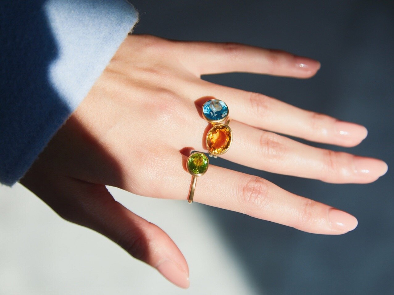 例えば、明るくポジティブな気分になりたいときには、シトリンやブルートパーズのような鮮やかでチアフルなカラーに惹かれたり、大胆な自分になりたい時は大ぶりの存在感のあるものを選んだり。