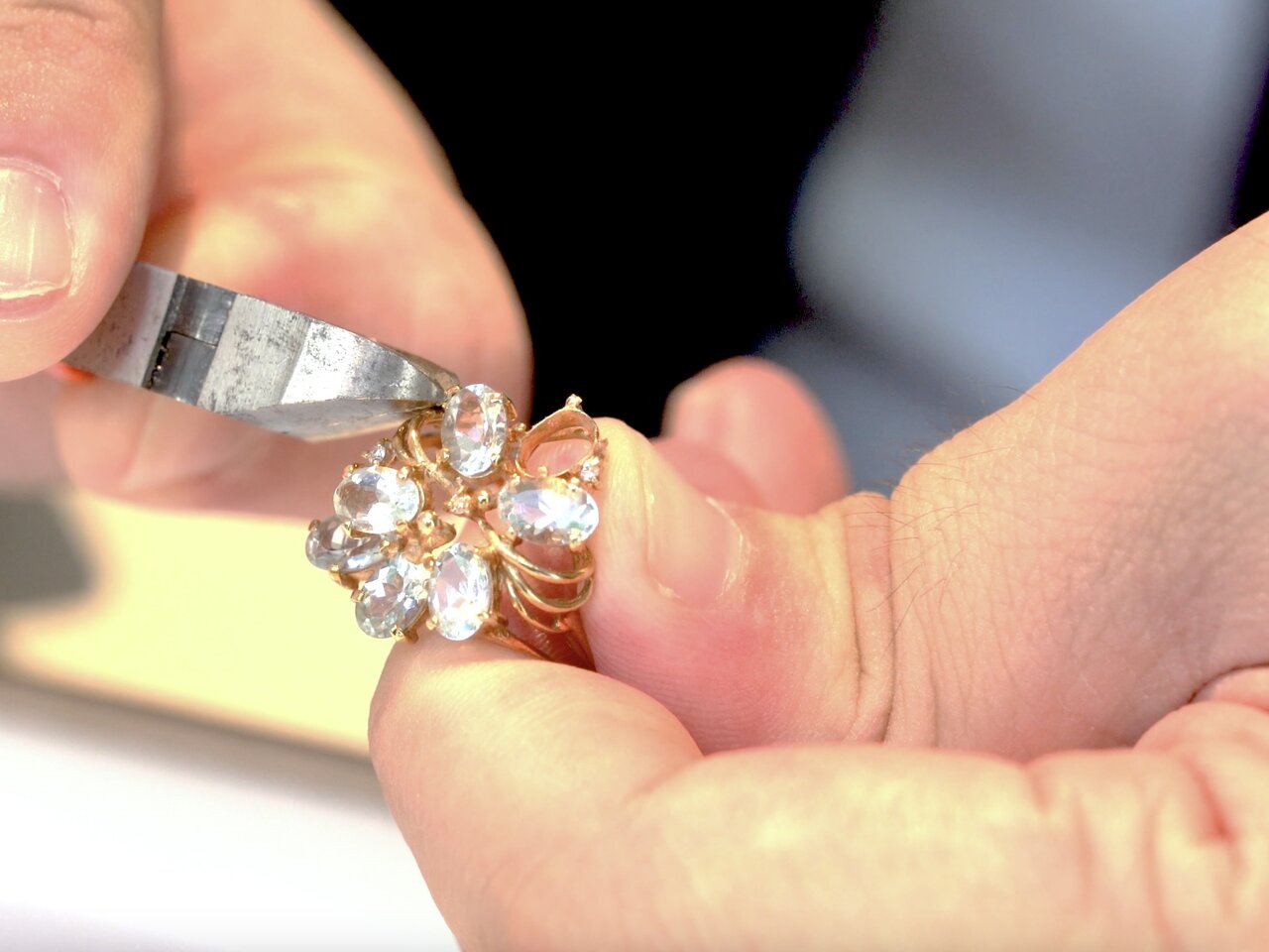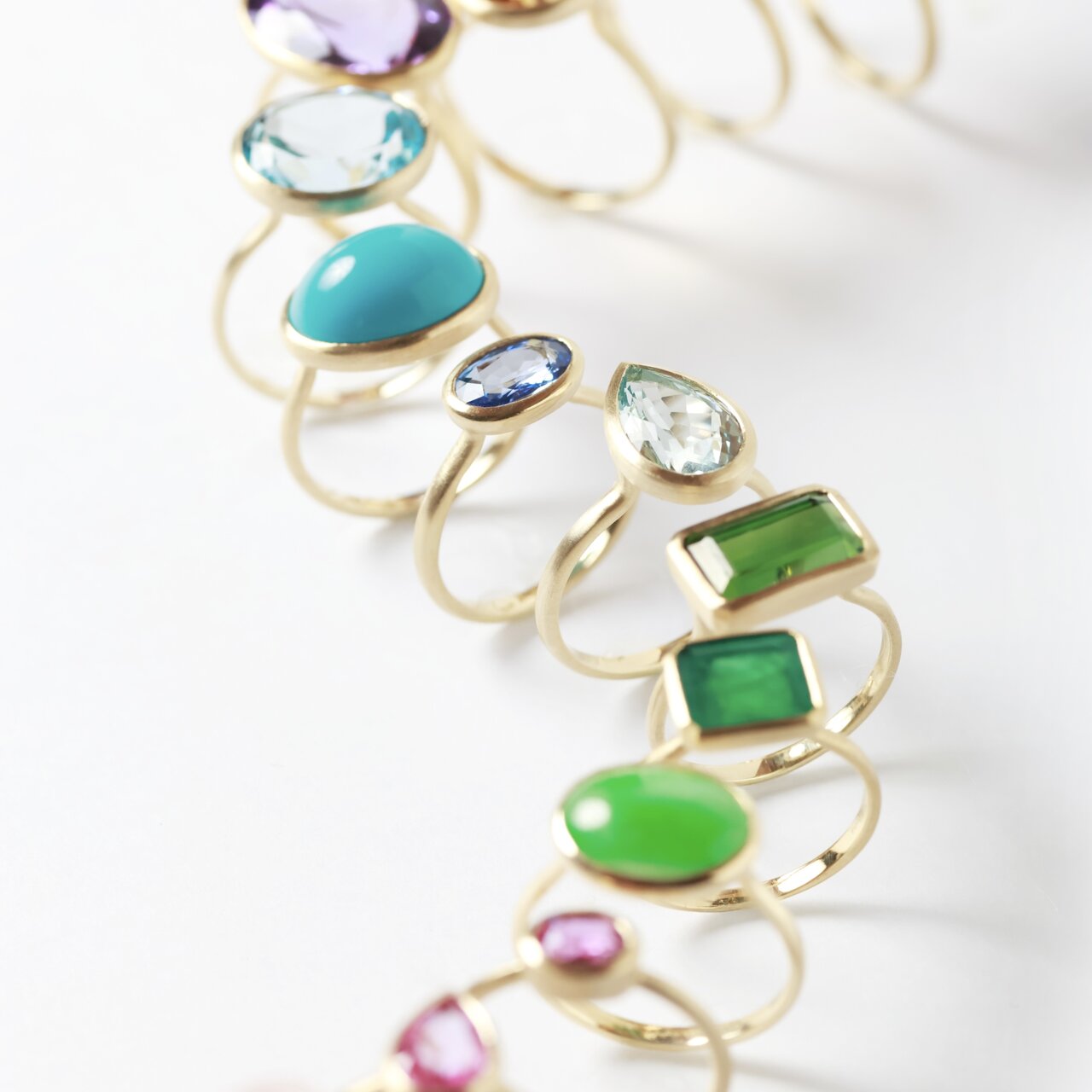 益留:リユースされたジュエリーから石を取り外し、アップサイクルするのですが、実際に外された天然石をよく見ると、不思議なほどに同じ天然石でも色やカット、表情が全く異なります。