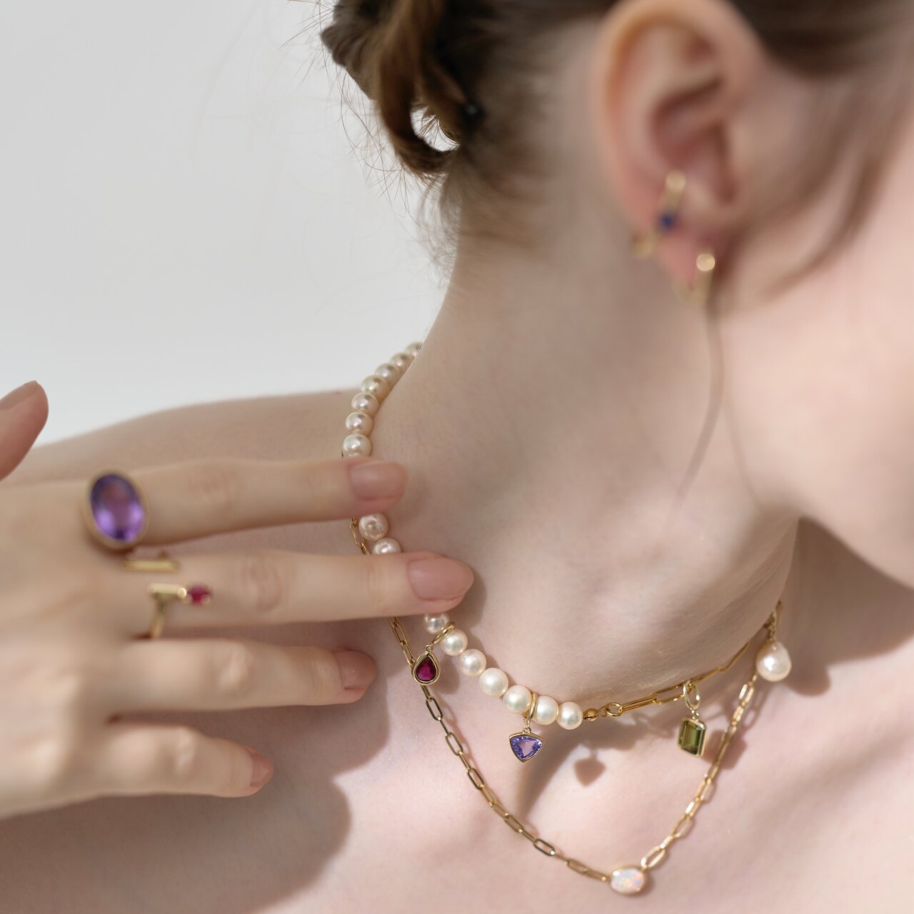 ジュエリーを迎え入れる時のタイミングや気分、お肌のトーンや、色のお好み、コーディネートとの合わせ方、込めたい想いなど、様々な要素が組み合わさって、とっておきの1点と出会うことができる。